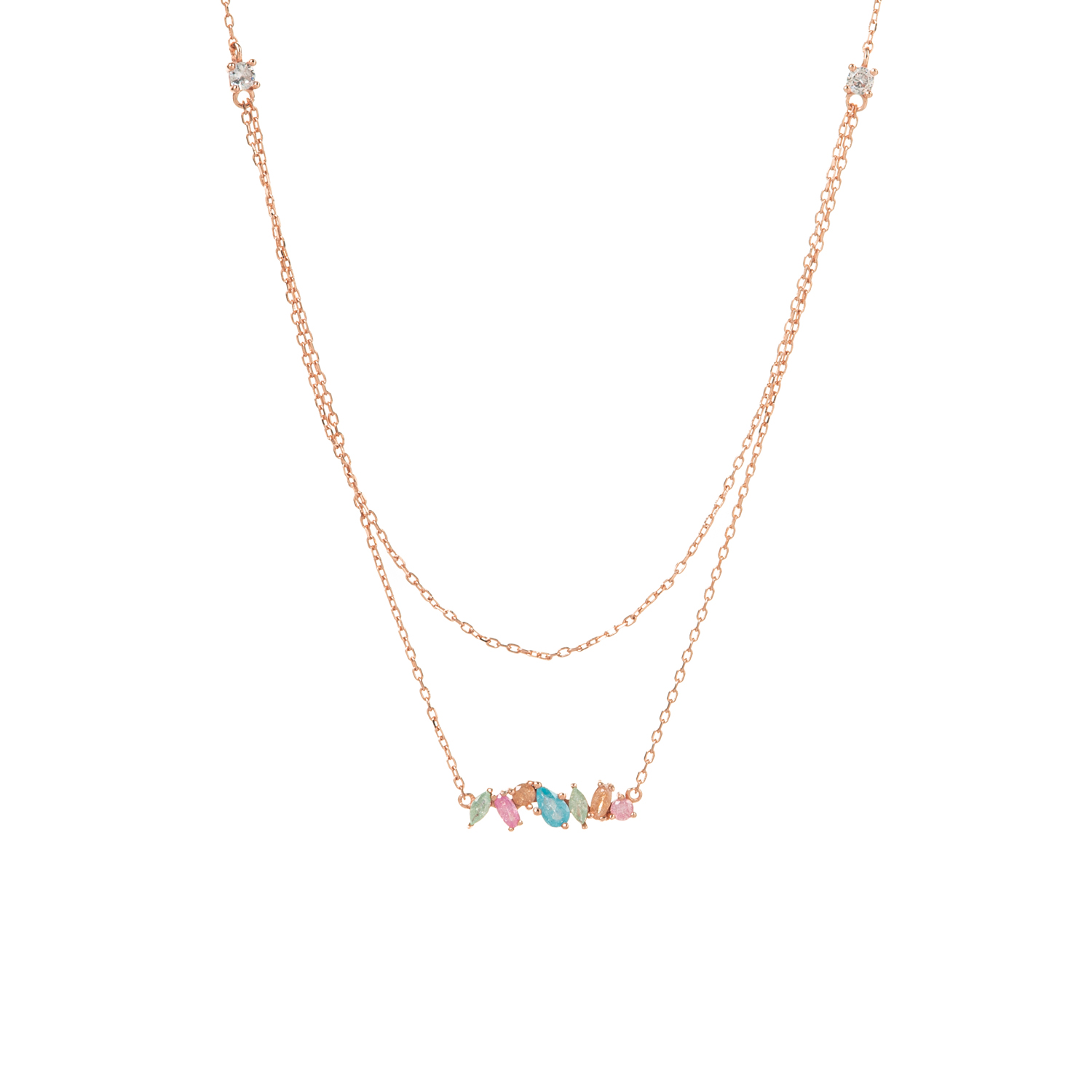 Ασημένιο κολιέ 925 διπλή αλυσίδα πέτρες ζιργκόν